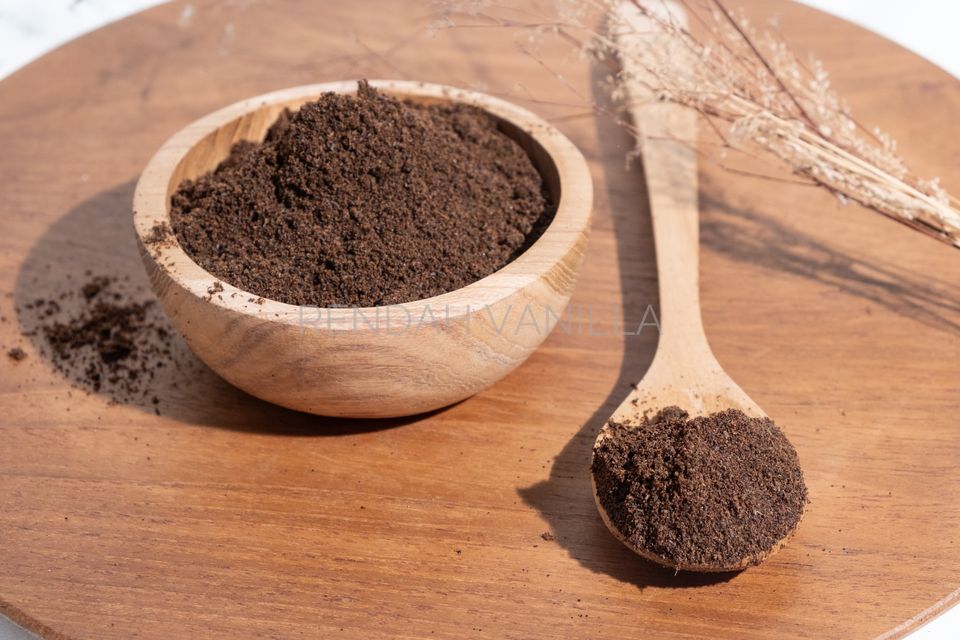 Dark brown to black Fine vanilla powder