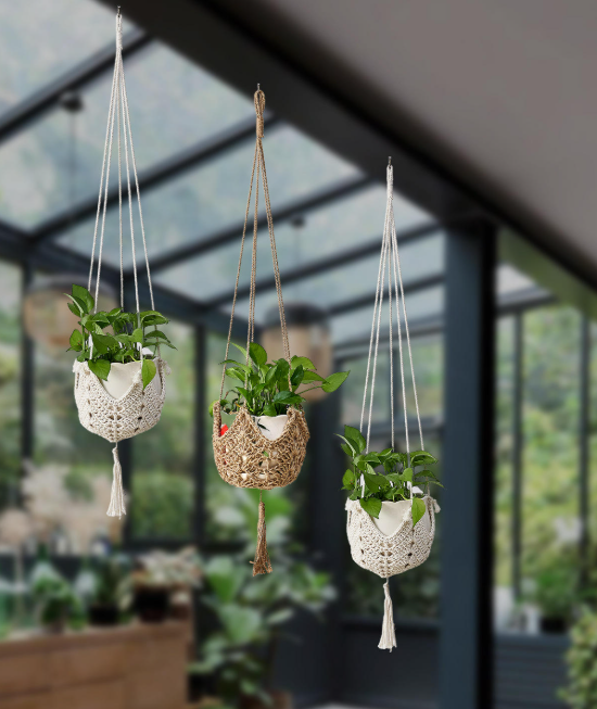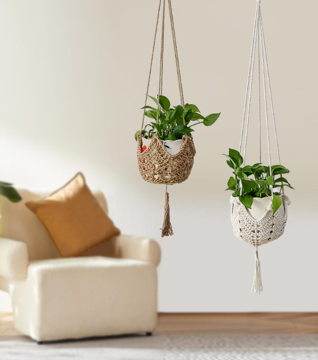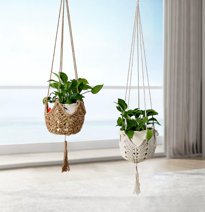 Plant Hangers Jute Crochet Hanger Large Hanging Wall Plants with Hooks for Fence Planters Plant Flower Pots