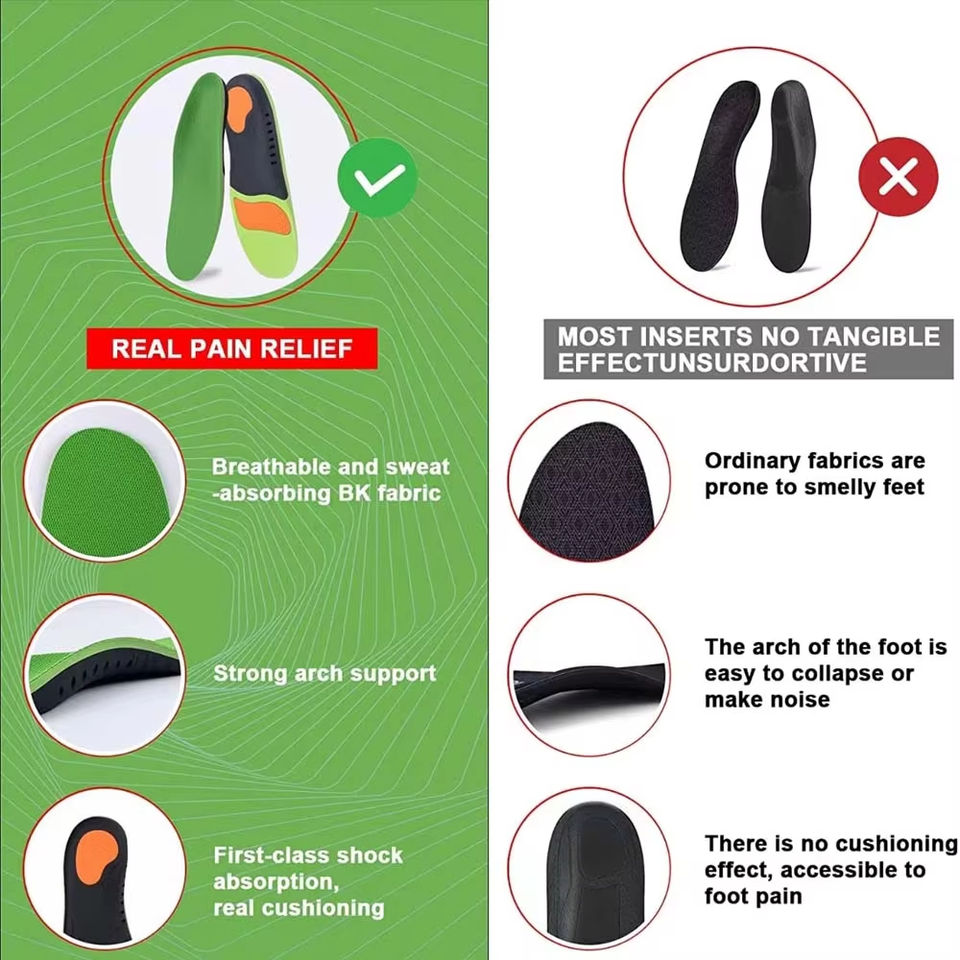 Plantar Fasciitis Orthotic Shoe Inserts Arch Support PU Comfort Shoe Insoles Athletic Running Insoles for Women and Men