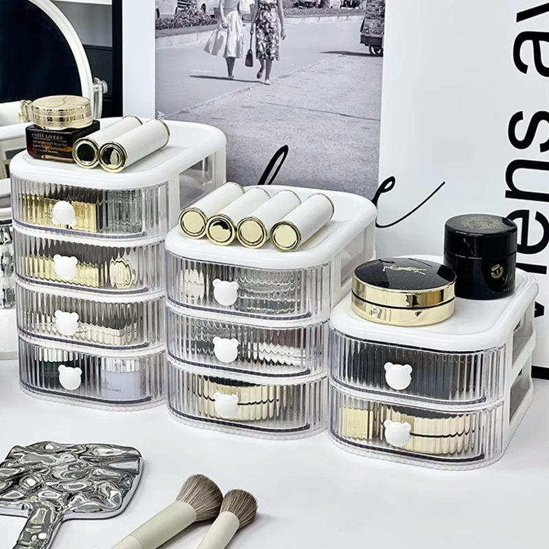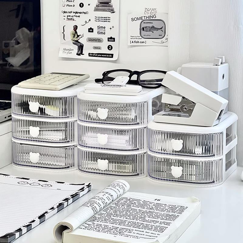 Planwith Desktop Storage Box Transparent Acrylic Organizer Stackable With Lid And Compartments For Office Desk Use
