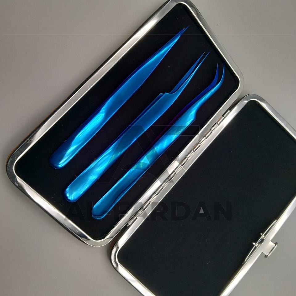 Plasma Blue Low MOQ Smooth Grip Japanese Stainless Steel Tweezers with Pointed Tip for Eyelash Extension Includes Magnetic Cases