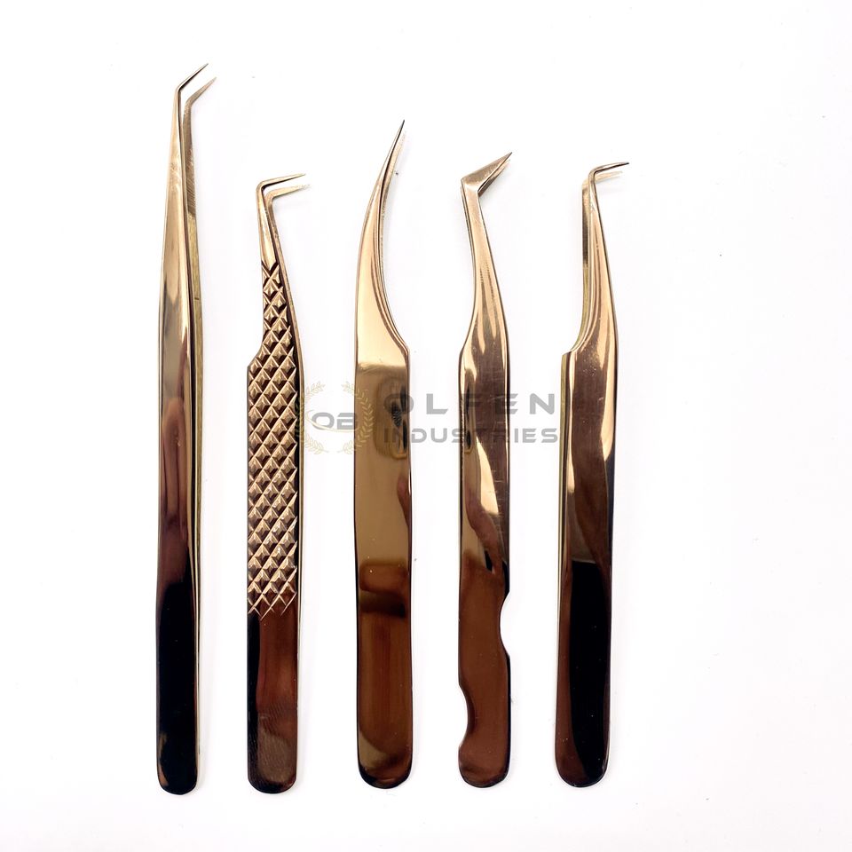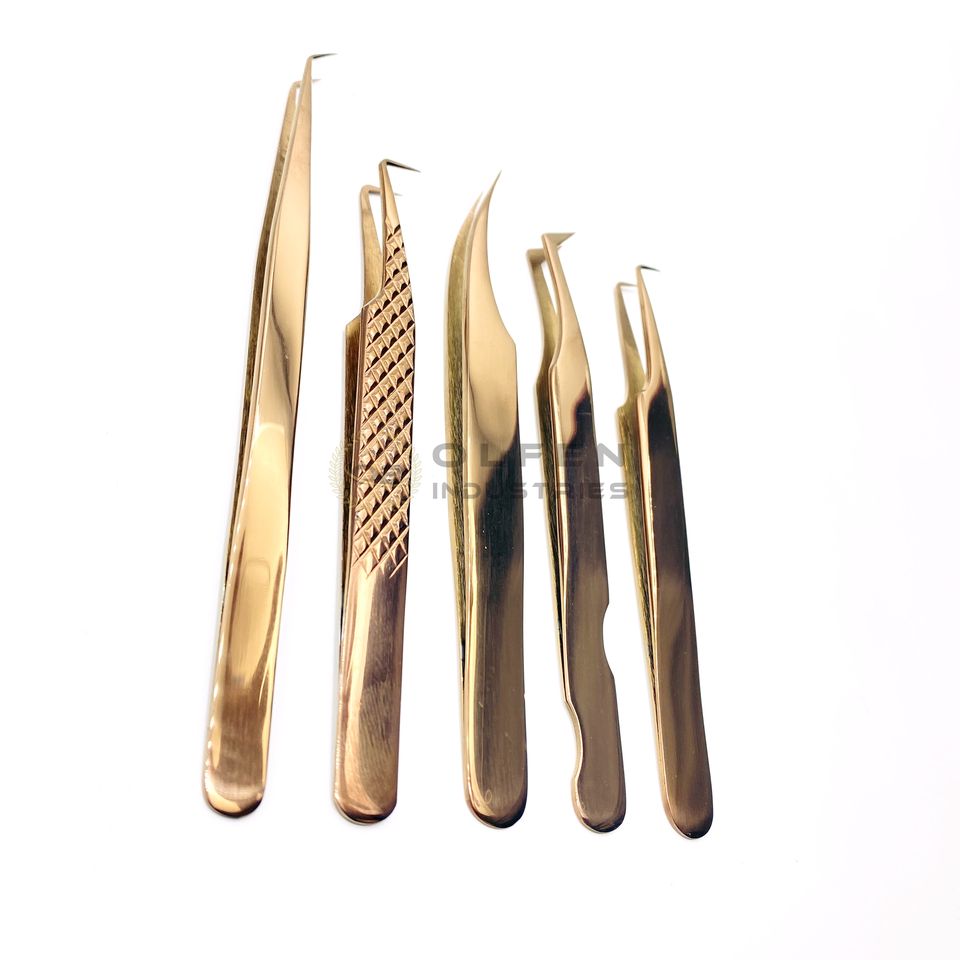 Plasma Rose Gold Eyelash Extension Tweezers Titanium Coated Volume Lash Tweezers