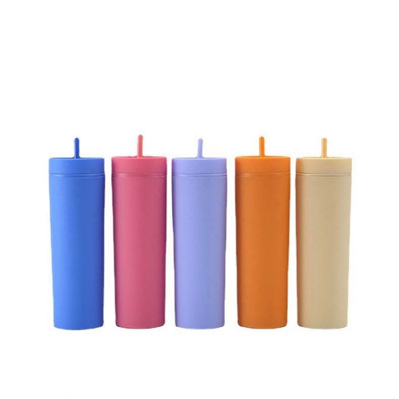 Plastic All Color Matte Pastel With Lids 16Oz Double Wall Tumblers Colored Acrylic Tumblers With Straws Cute Cups