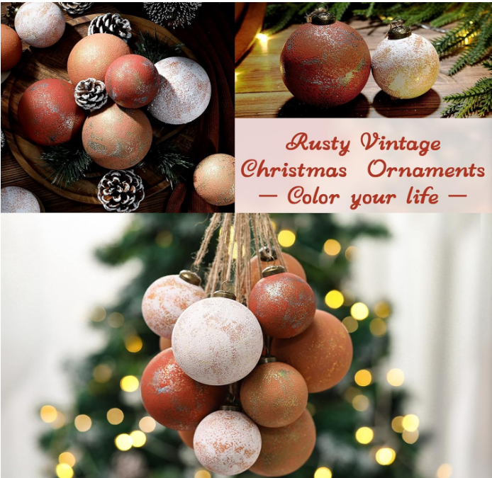 Plastic Christmas Balls Large-sized Rural Retro Neutral Texture Farmhouse Brown Christmas Decorations Bohemian Orange Copper