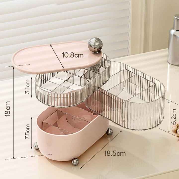 Plastic Clear Oval Shape 3 Layers 360 Rotation Showcase Multifunctional Bathroom Makeup Holder Rack for Cosmetics, Bedroom