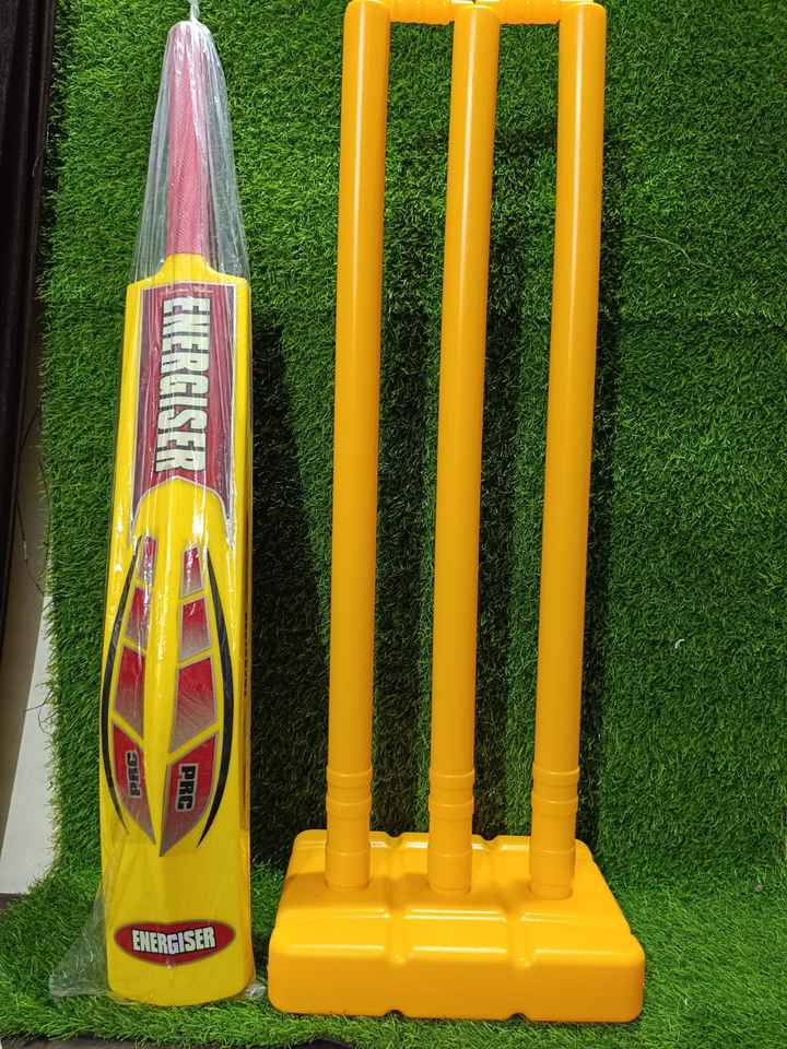 Plastic Cricket Full Set with 3 Stumps and 1 Bat Standard Size Customizable Packaging