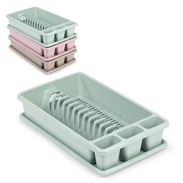 Plastic Dish Rack With Cutlery Holder And Draining Tray For Kitchen Use