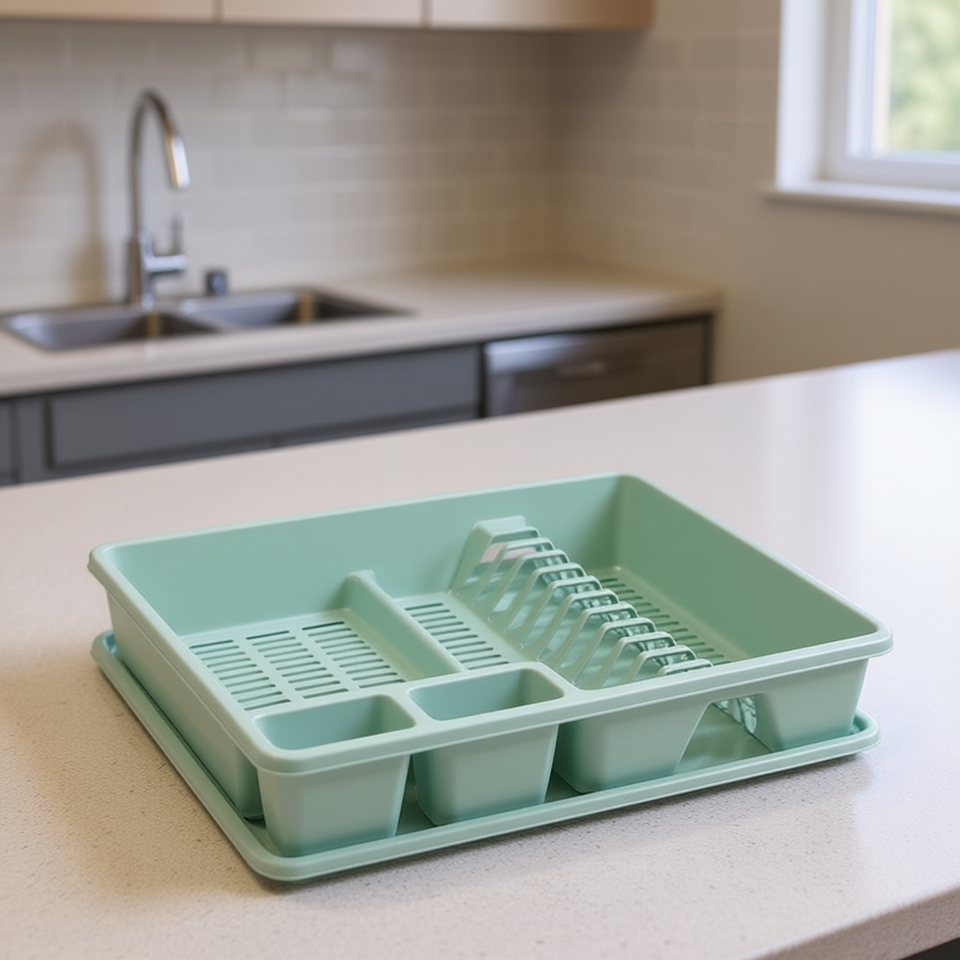 Plastic Dish Rack With Draining Tray And Cutlery Holder Square L Stackable Modern Kitchen Use