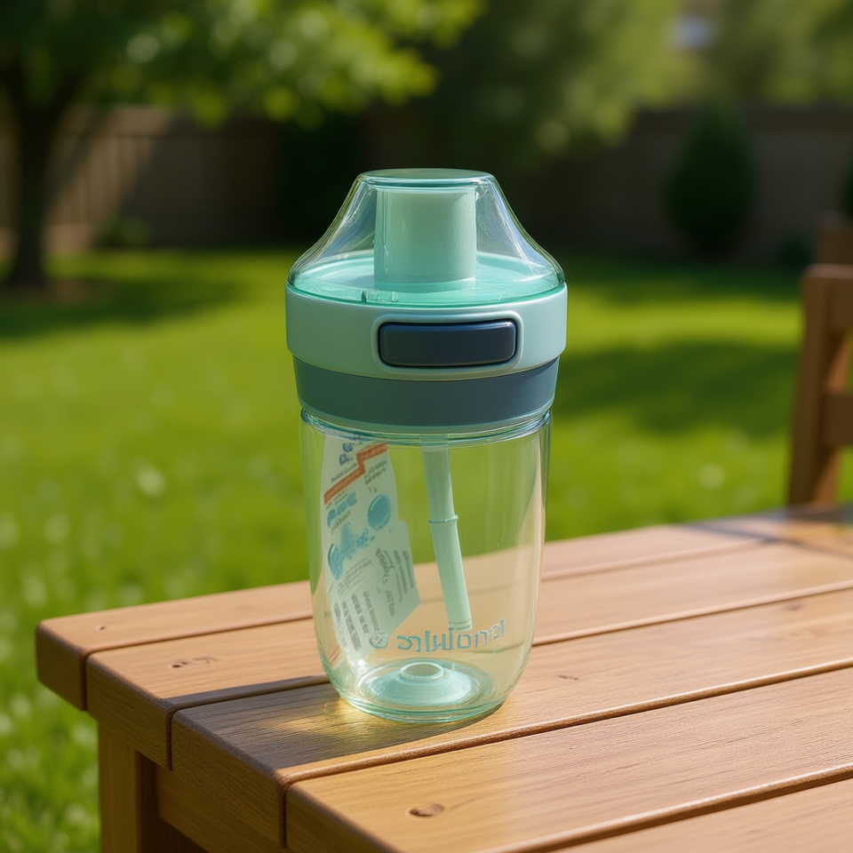 Modern Plastic Drinkware Container With Straw For Children, Flip Top Lid, Ideal For Hiking And Camping, Made In Mexico, Model 79