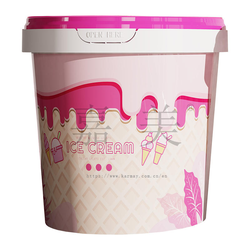 Plastic Ice Cream cup gelato cup with lid and spoon inside Freezer Container Round 500ml IML label printed