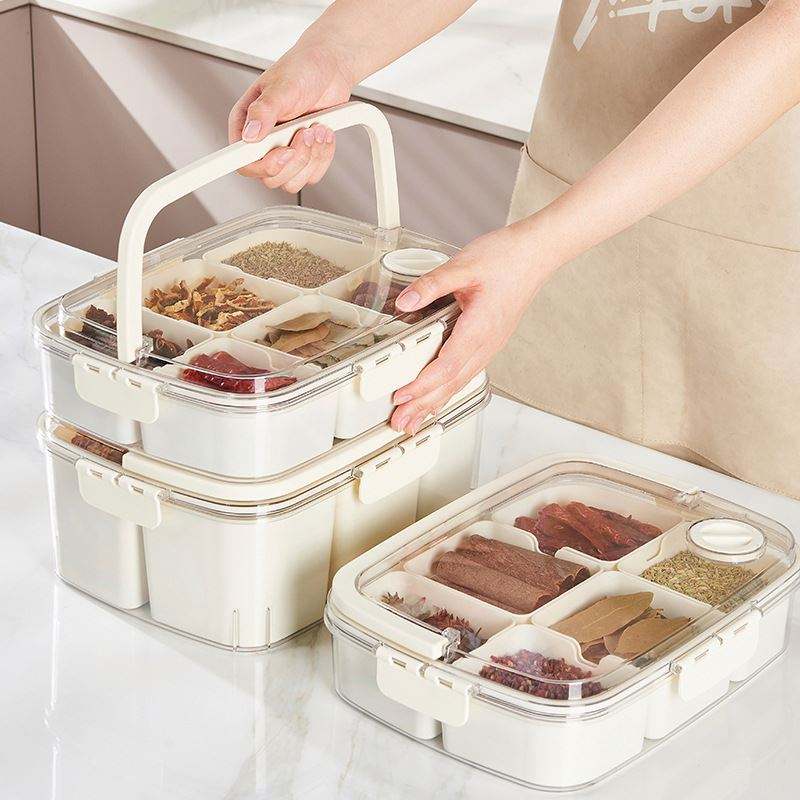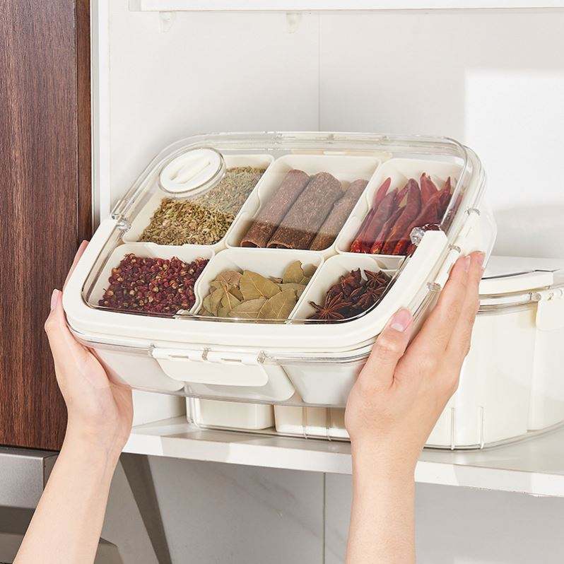 Plastic Injection Spice Storage Box Seasoning Storage Jar Kitchen Storage Household Food Grade Transparent Square Sealed Box-