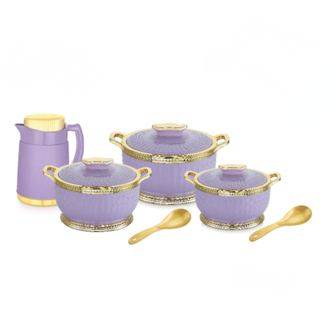 Casseroles- 3 pcs, Flask- 1 pc, Spoon- 2 pcs, Dinner Plate- 3 plates