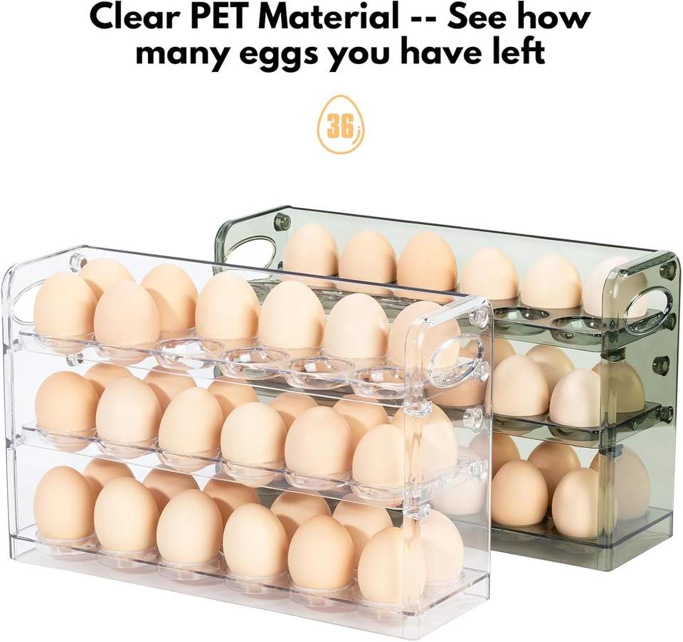 Plastic PET Household Reusable Egg Storage Container 3 Layer 30 Grids Flip Kitchen Fridge Egg Organizer Holders