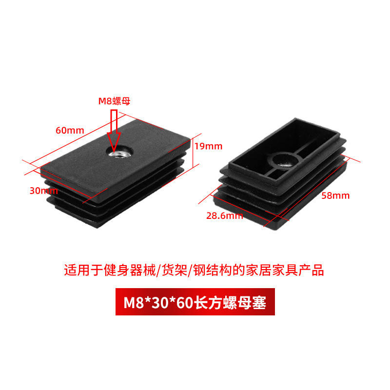 Plastic Rectangular Tube Plug M8*30*60 With Nut For Square Tube Insert
