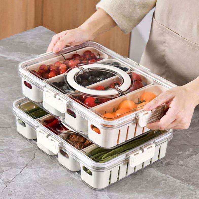 Plastic Storage Bins Boxes Refrigerator Frozen Divided Serving Tray for Food Preservation Kitchen Fruit Fish Containers Lid