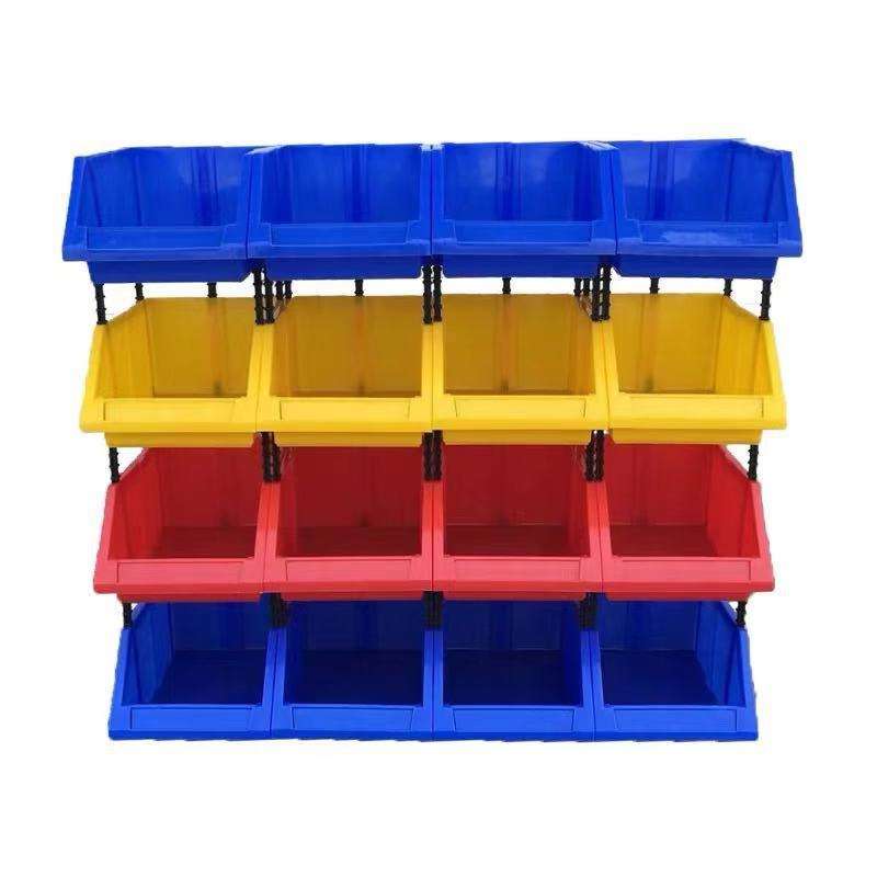 Plastic Storage Bins Rectangular Stackable Multi Layer For Workshop Tool Organization Blue Yellow Red Color Options