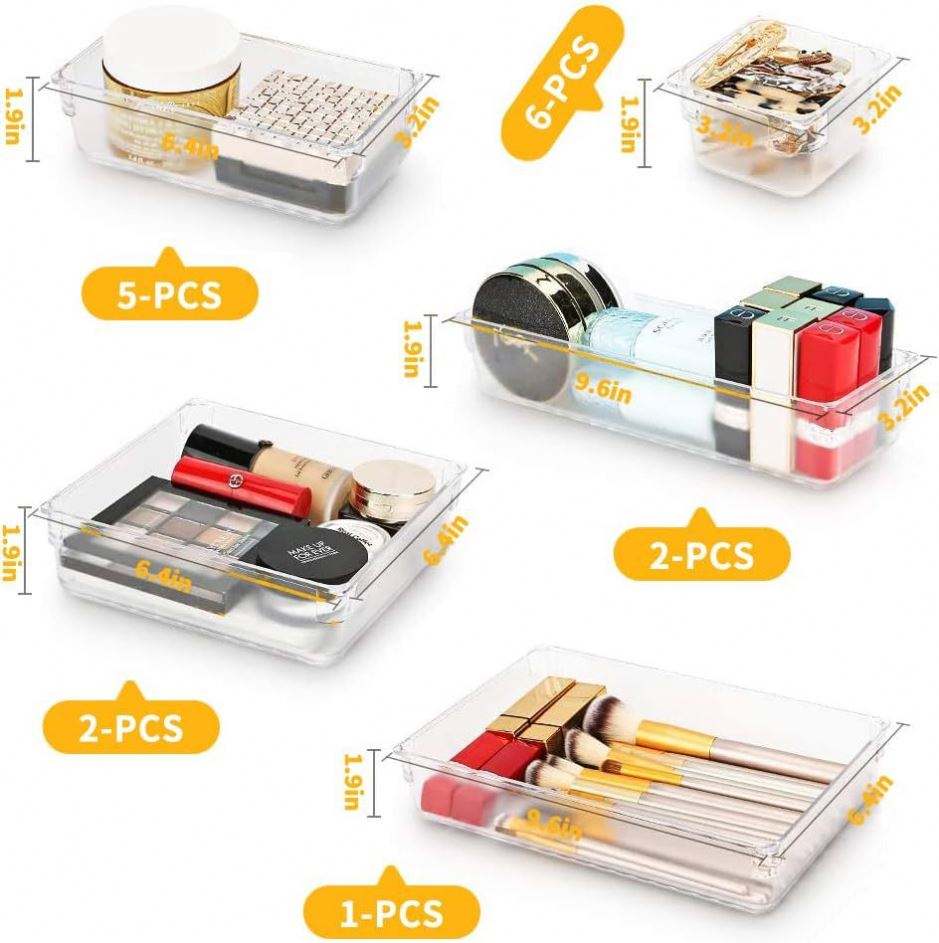 Plastic Transparent Desktop Drawer Organizer for Office Supplies Cosmetics & Clutter Disposal-Multi-section Clear Dividers