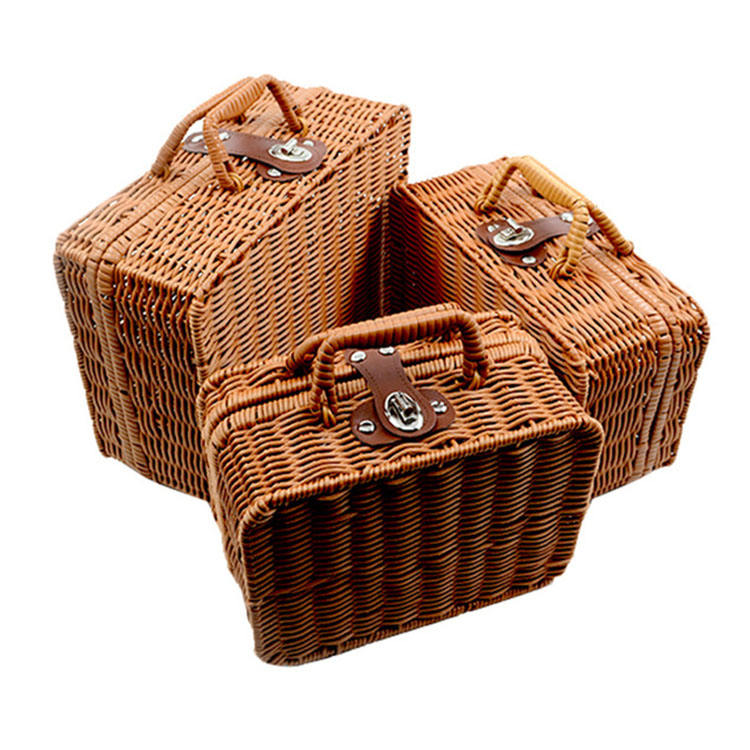 Plastic Wicker Picnic Basket with Deluxe Service Set 4 Persons Eco-Friendly Durable Storage Hamper Custom