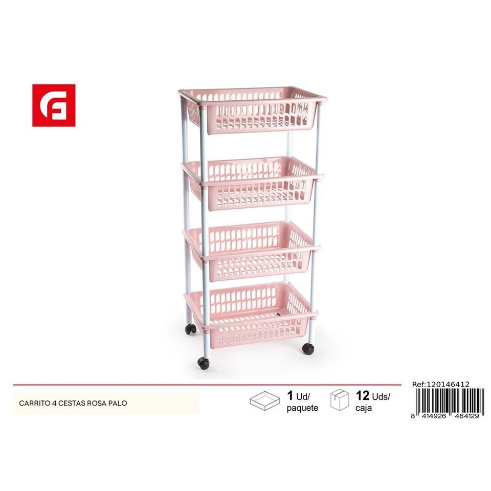 Plastic reed basket with 4 pale pink baskets - Home storage