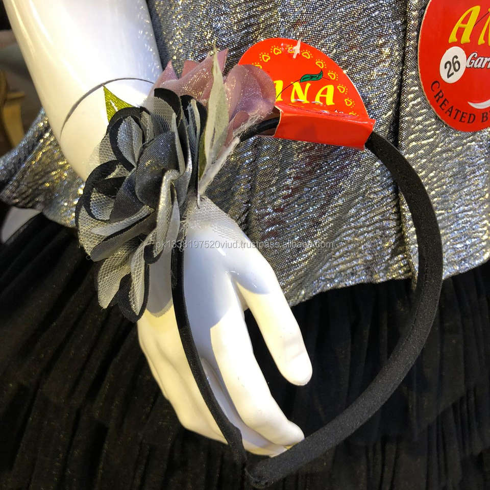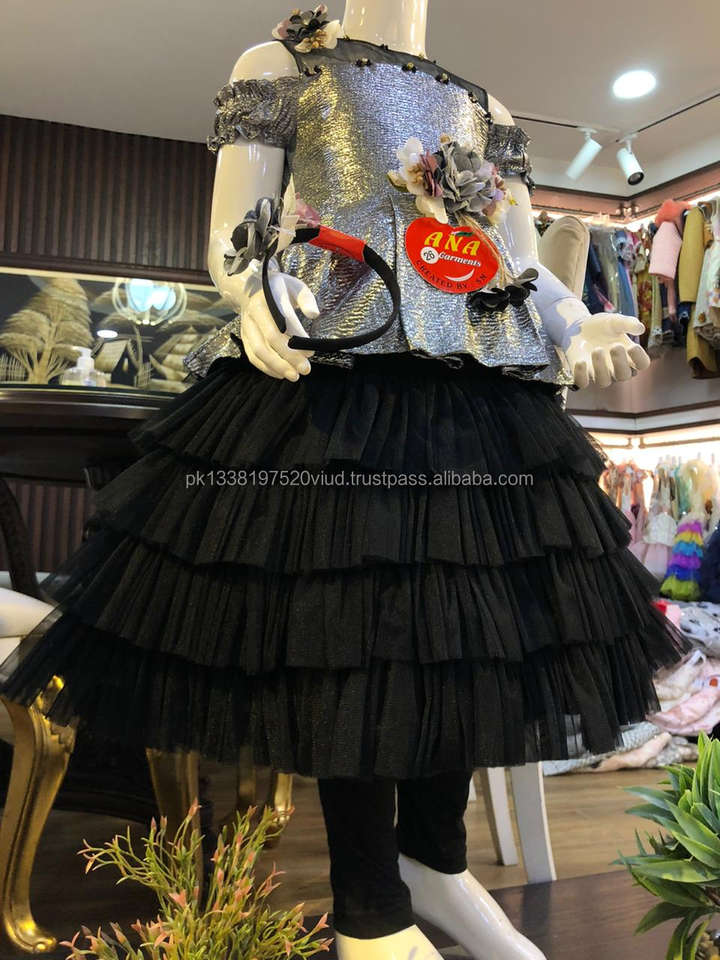 Product Name:plated fabric net frocks with hairband black and gray color frocks