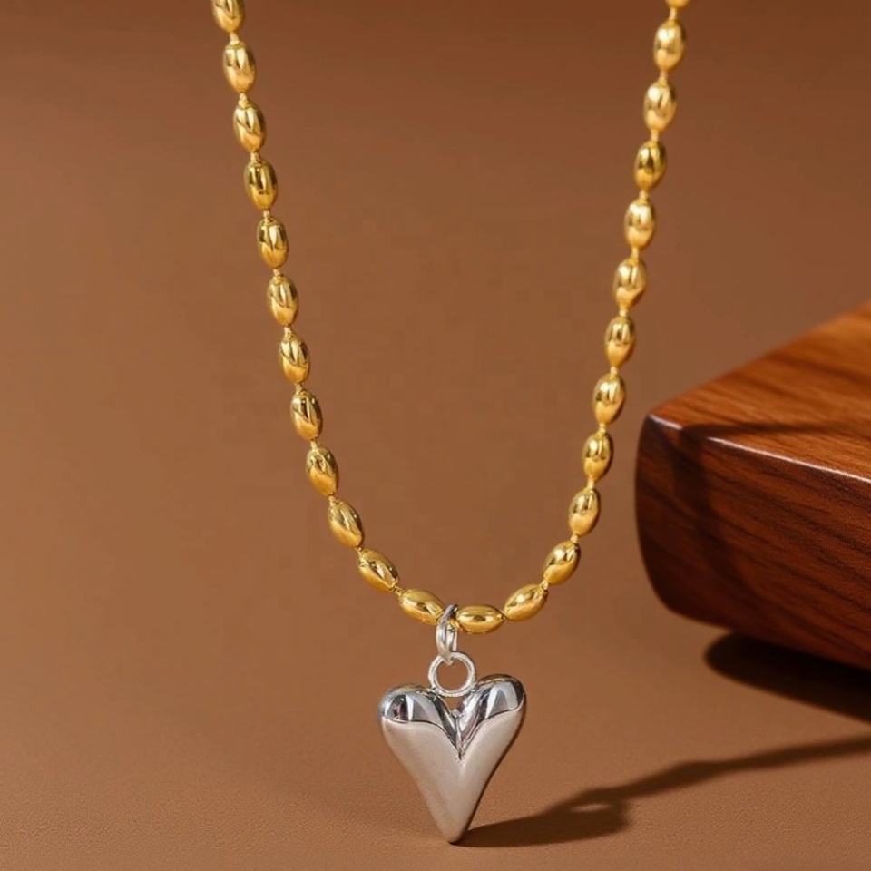 Plated Gold and Silver Color Combination Heart Shaped Rice Bead Chain for Women's Collar Necklace Stainless Steel Necklace
