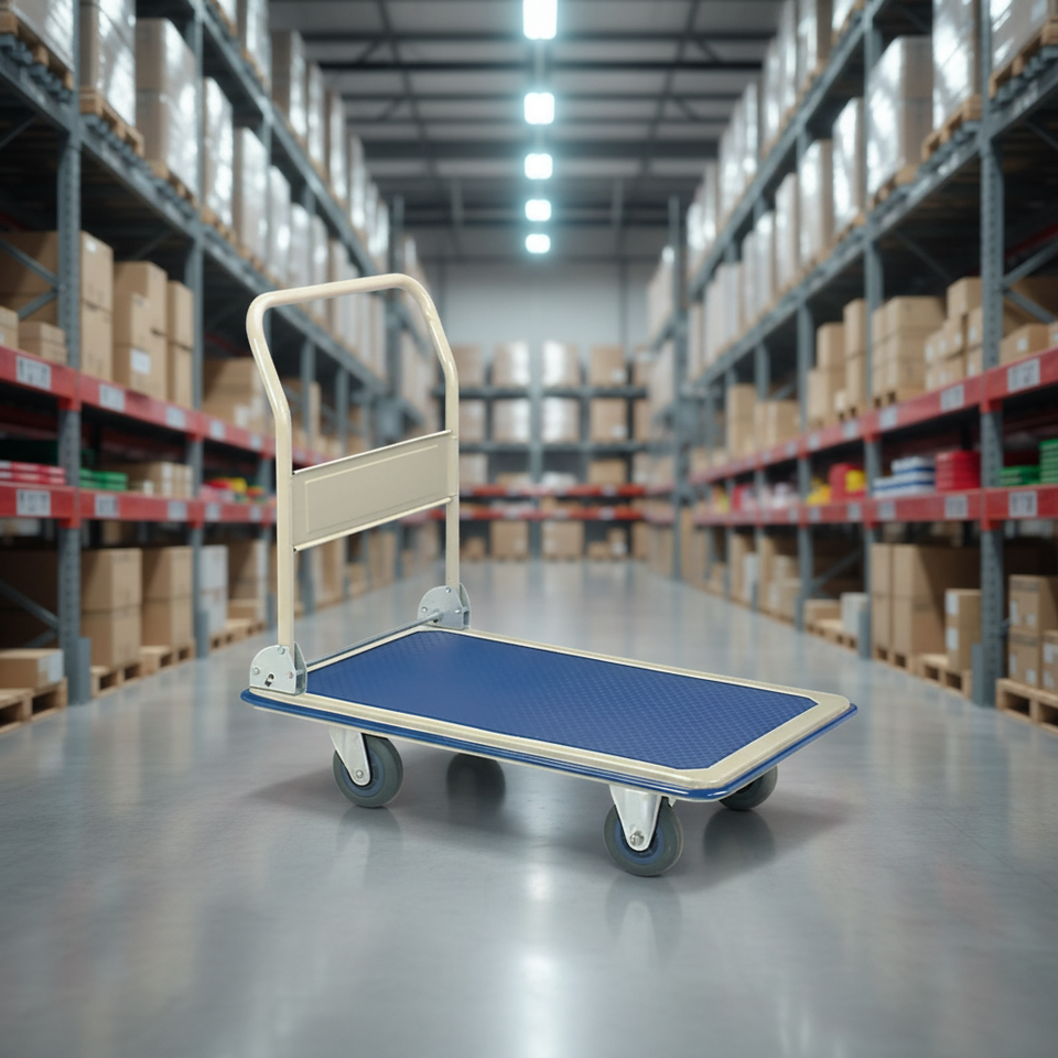 Platform Truck RE169 300 KG Capacity Heavy Duty Hand Trolley 900 x 600 mm Platform Size for Warehouse Industrial and Office Use