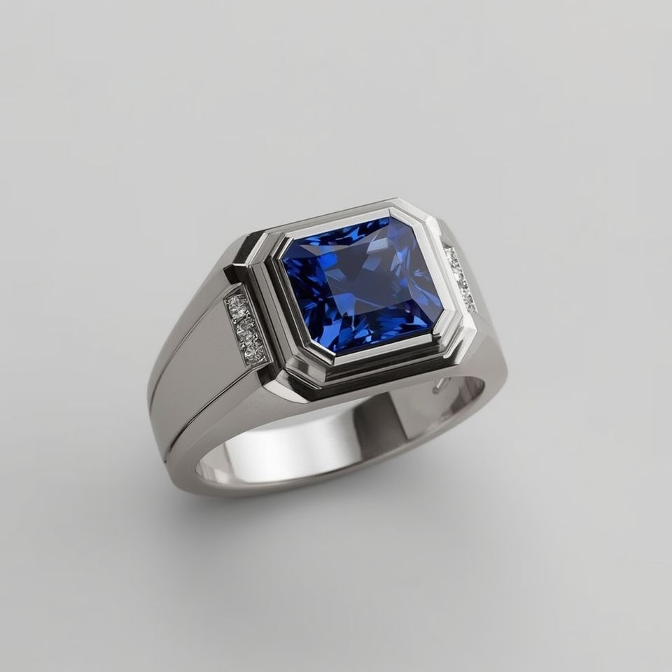Platinum Blue Sapphire Men Engagement Ring Modern Luxury Design Fine Jewelry OEM Custom Sapphire Ring