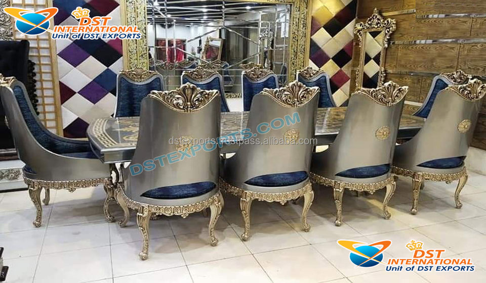 Platinum Finish Victorian Round Dining Table Set Formal Dining Table Set in Antique Platinum Finish Vintage Dining Table Set