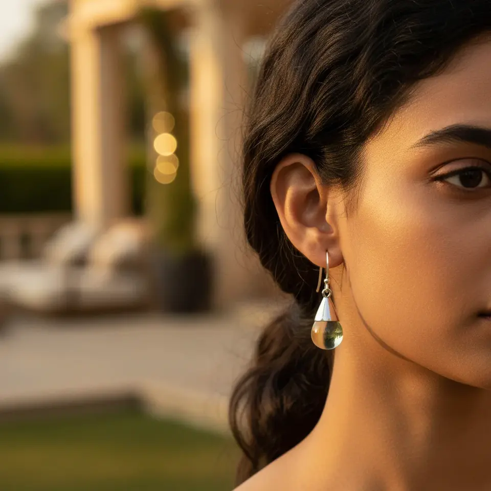 Platinum Huggie Earrings Silver Teardrop Dangle with Yellow Gemstone Classic Religious Style Hook Shape for Gift