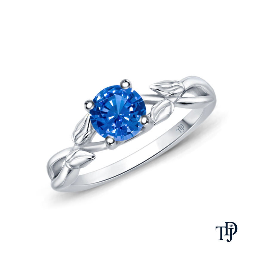 Platinum Intertwined Nature inspired Budding Vine Solitaire Blue Sapphire Ring
