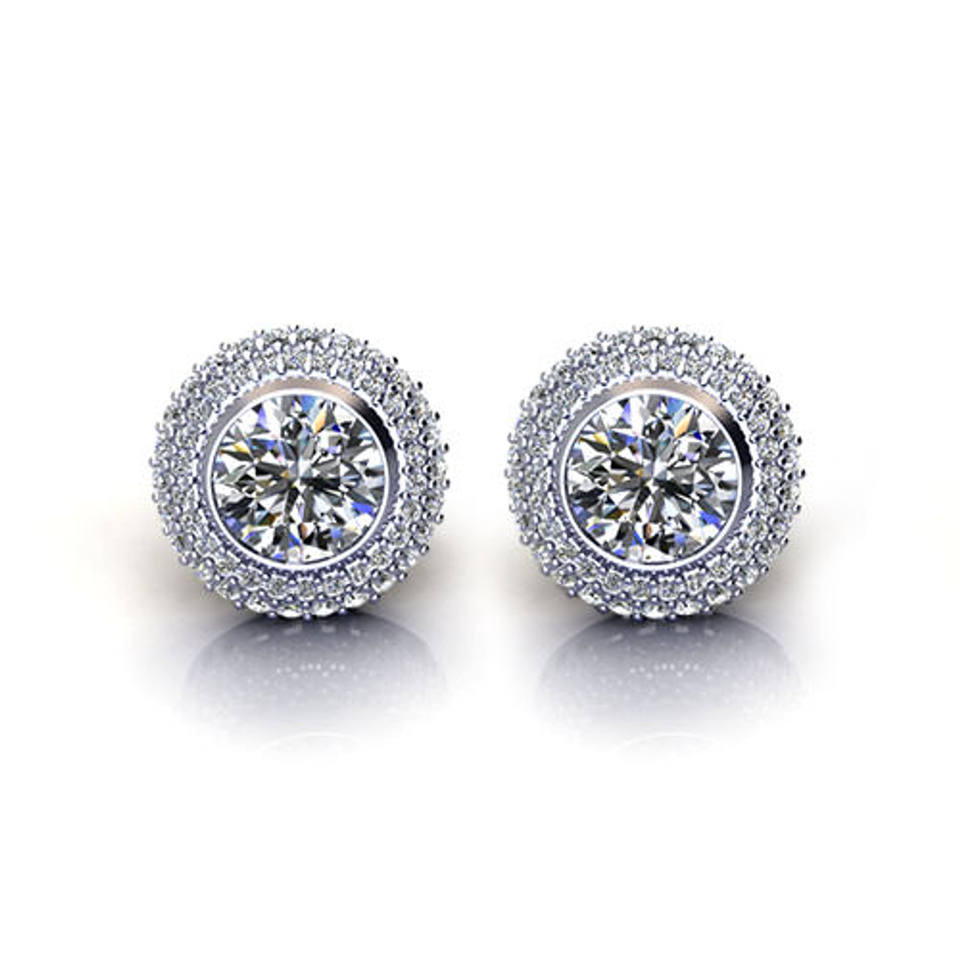 Platinum Micro Pave Set Double Halo Round Cut Lab Grown Diamond Stud Earrings