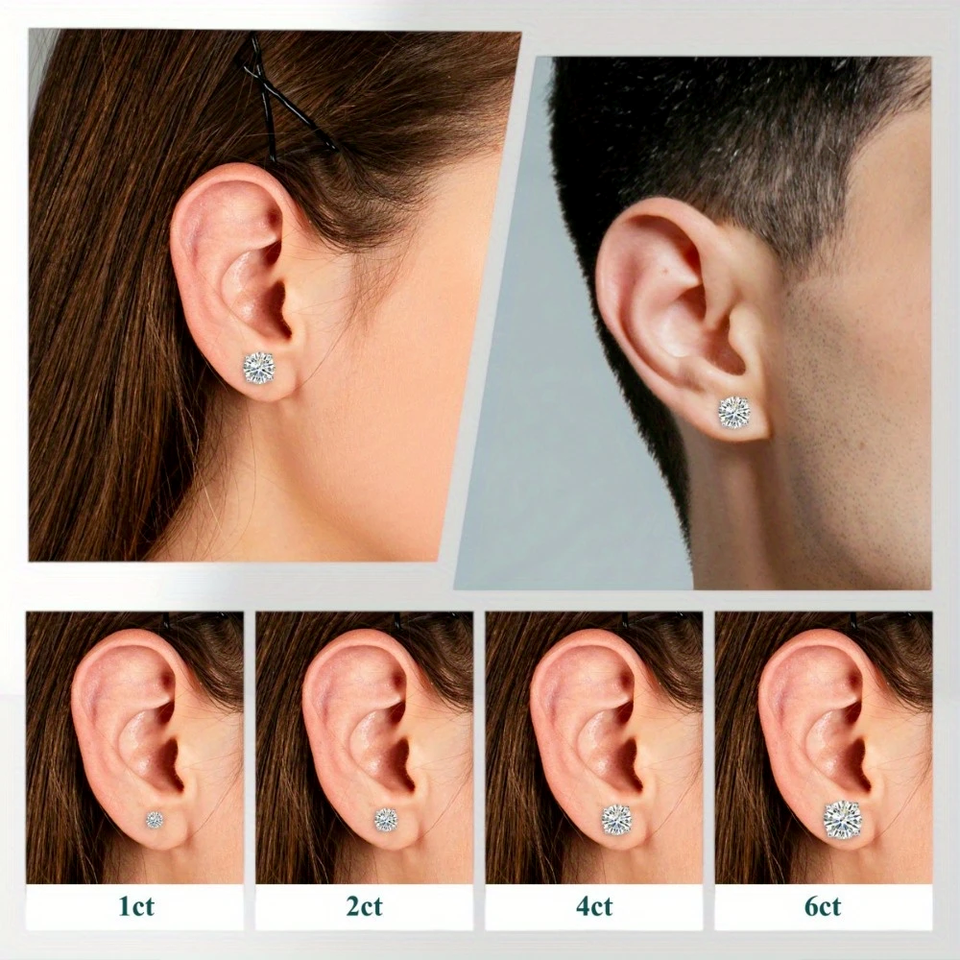 Platinum Plated Sterling Silver 925 Women's Moissanite Stud Earring Wedding Fashion Jewelry Birthday Gift Wedding Engagement