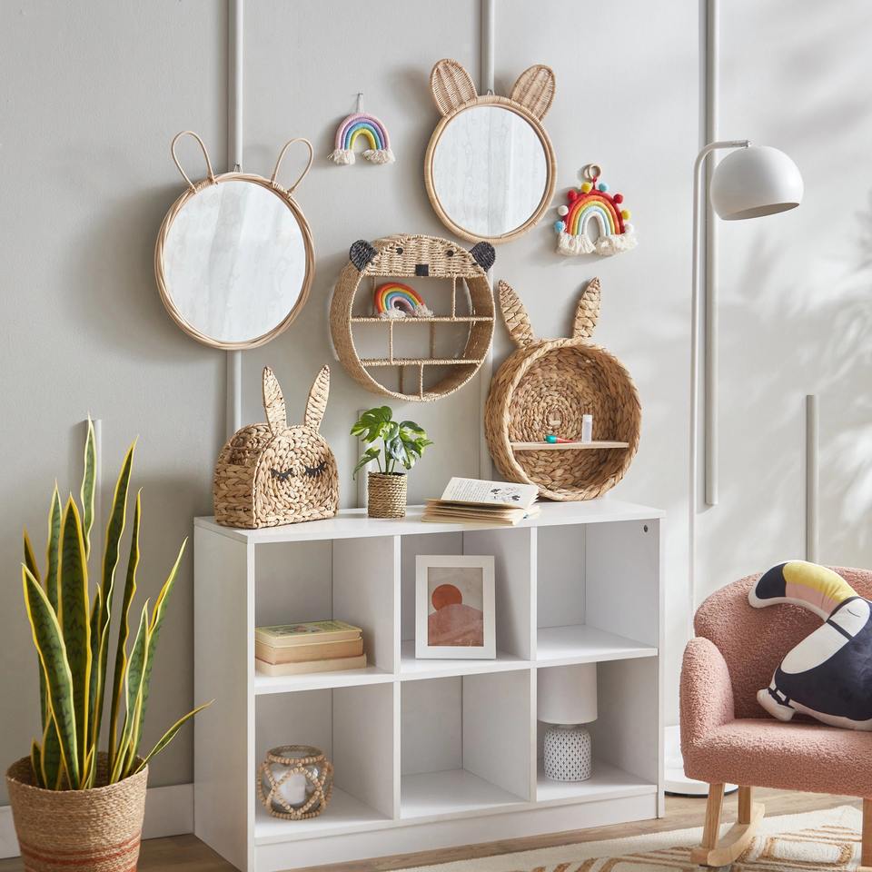 Size: L14,2 x W14,2 x H3,5 inch:Playland Rabbit Water Hyacinth Wall Shelf