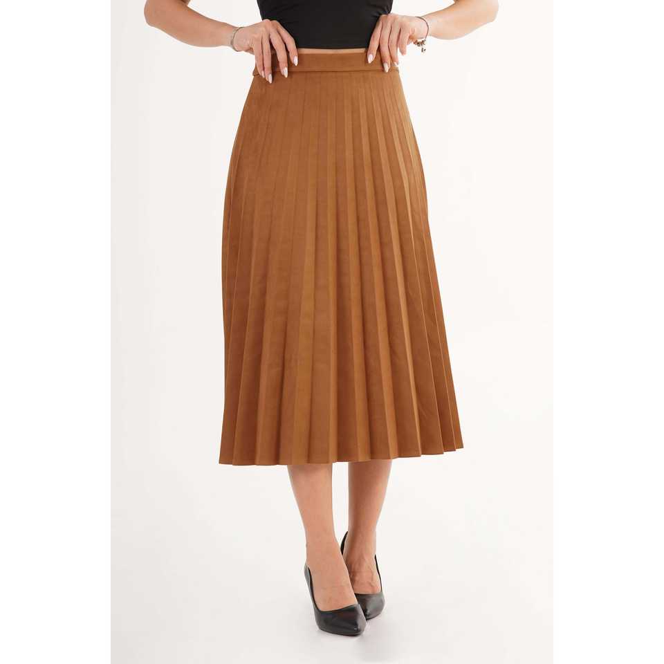 Pleated High Waist Tan Synthetic Leather Long Skirt For Women Soft Fabric