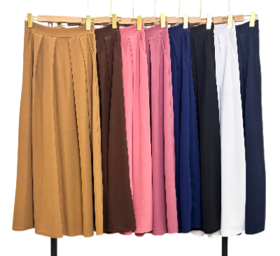 Women's Pleated Flowy Skirt High Waist Puffy Design Casual Style 100% Polyester Cotton Plain Dyed Fits up to 85KG
