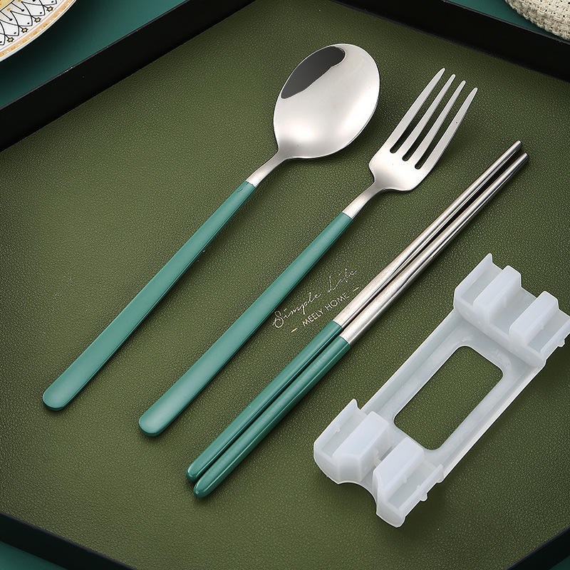 Plm Korean Style Portable Cutlery Set 304 Stainless Steel Chopsticks Spoon Fork For Outdoor Travel Camping Student Use