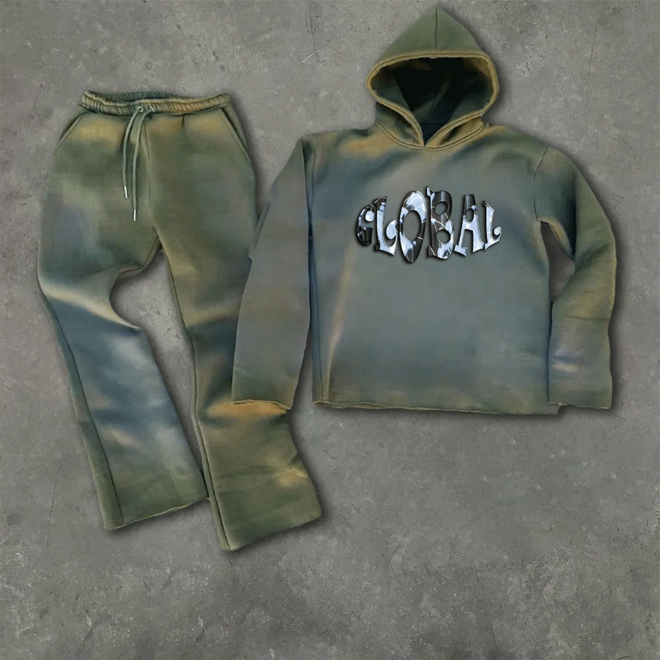 Plus Size 100%Cotton French Terry New Fashionable Puff Printing Tracksuit Custom Logo Heavyweight Oversized Tracksuit for Men