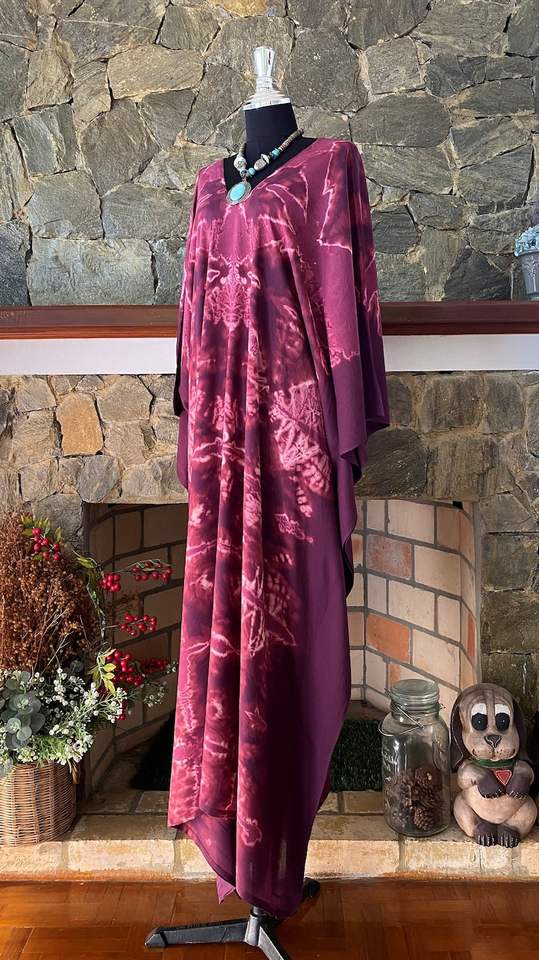 Plus Size Abstract Shibori Tie Dye Rayon Caftan Dress Relaxed Fit Flowy Women Beach Coverup