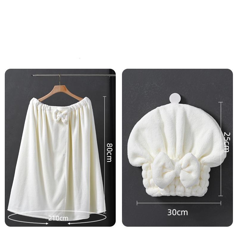 Plus Size Bathrobe Dress - Wearable Wrap Bath Towel with Hair Towel Absorbent Coral Fleece Bath Gown for Home & Travel Use