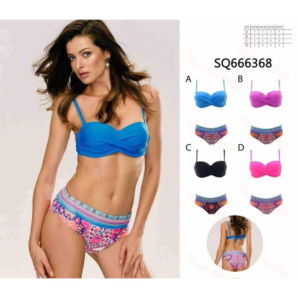 HDJ Bikini Set Plus Size Tummy Control High Waist Floral Print Two Piece Swimwear Bandeau Top With Ruched Detail Women's