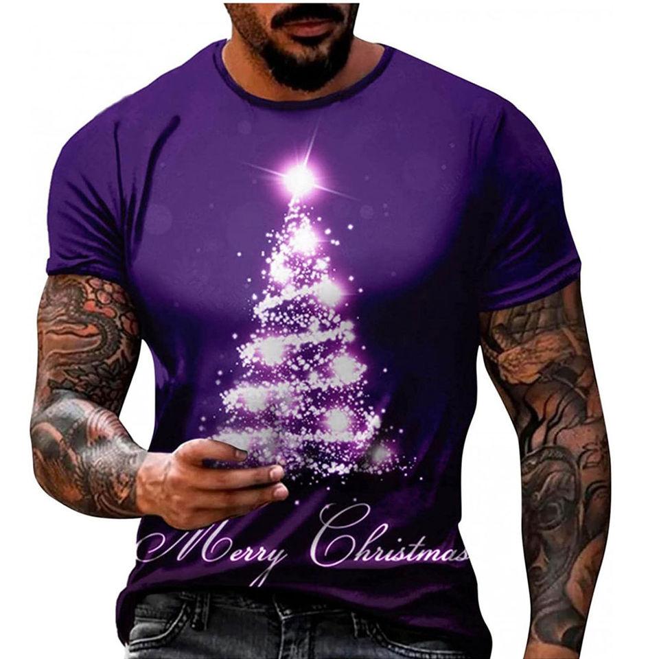 Men's Christmas Graphic T-Shirt Plus Size 100% Cotton Summer Print Digital Front Logo Wholesale Supply