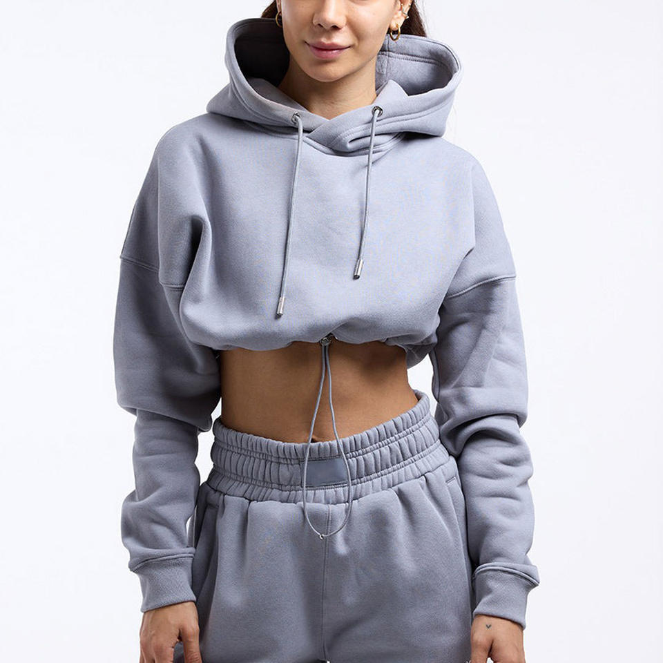 Plus Size Custom Winter Basic Heavyweight Crop Top Drawstring Running Workout Pullover Hoodie