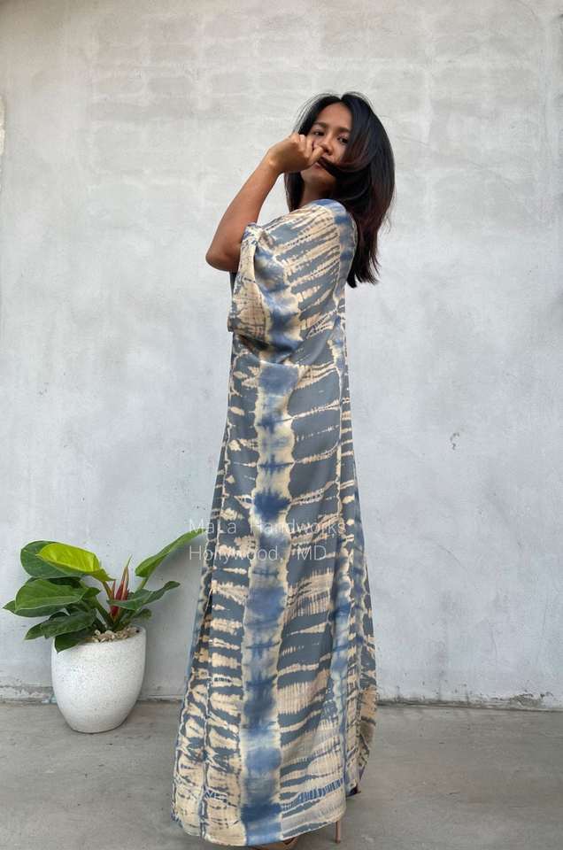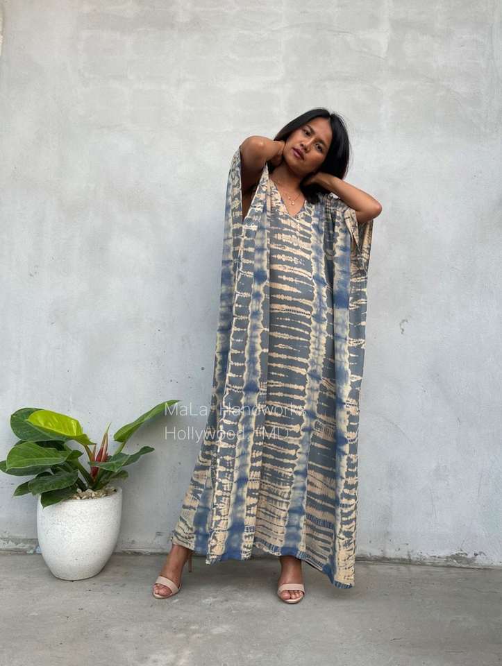 Plus Size Gray Bronze Tie Dye Kaftan Moroccan Caftan Women African Dress Rayon Resort Wear Vacation