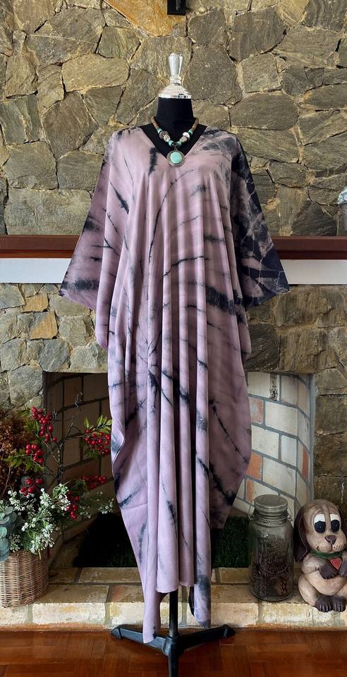 Plus Size Hand Dyed Shibori Rayon Kaftan Maxi Dress Relaxed Fit Flowy Women Wear