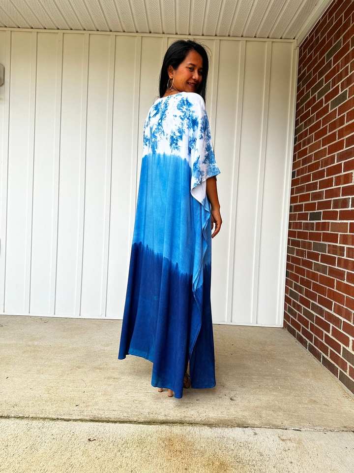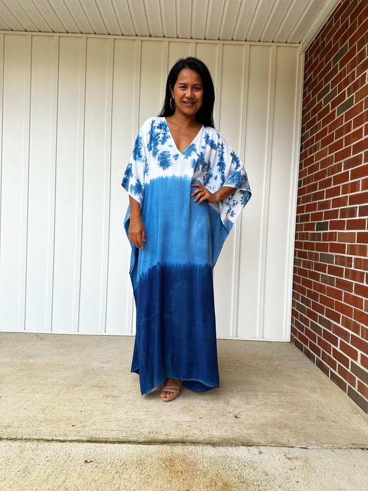 Plus Size Indigo Dyed Coastal Dress Natural Dyed Kaftan Resort Dress Maxi Boho Dress Vacation Coverups Cruise Wear