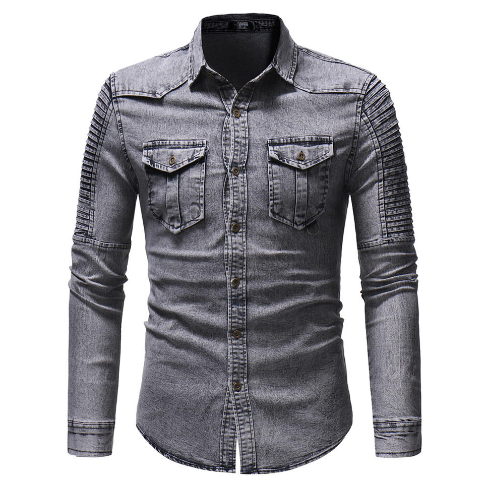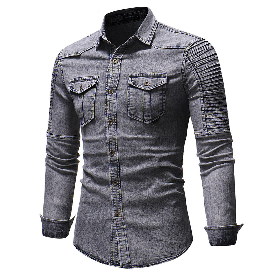 Plus Size Men Casual Long Sleeves Shirts 2025 New Fashion Man Washed Jeans 100% Cotton Denim Shirt for Men