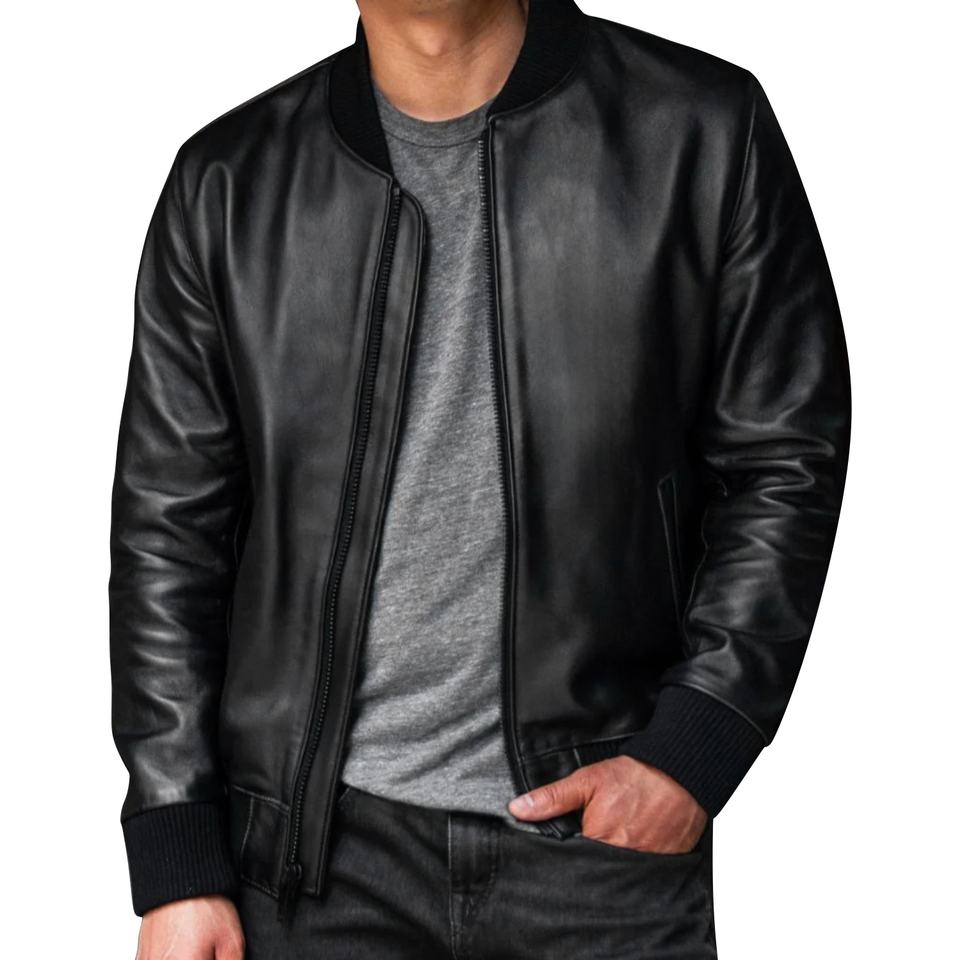 Plus Size Men's Black Leather Jacket Winter Customized Patch Work with Front and Back Pleat Side Pockets High Quality Windproof