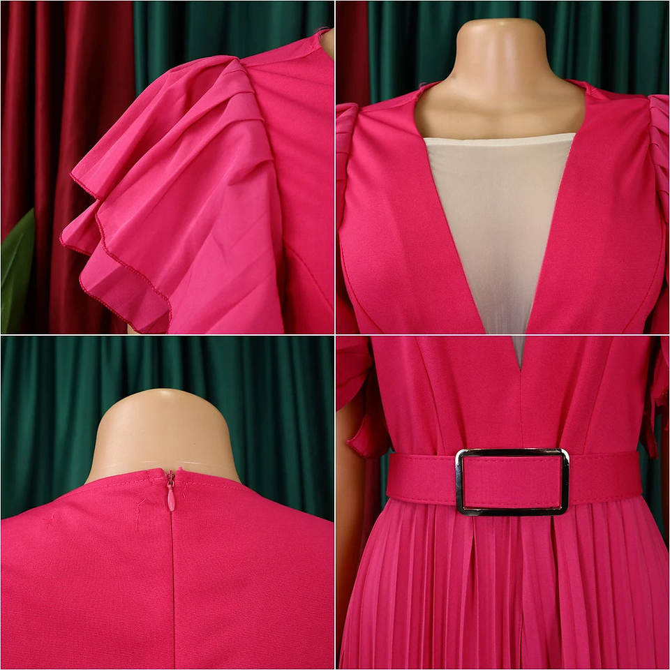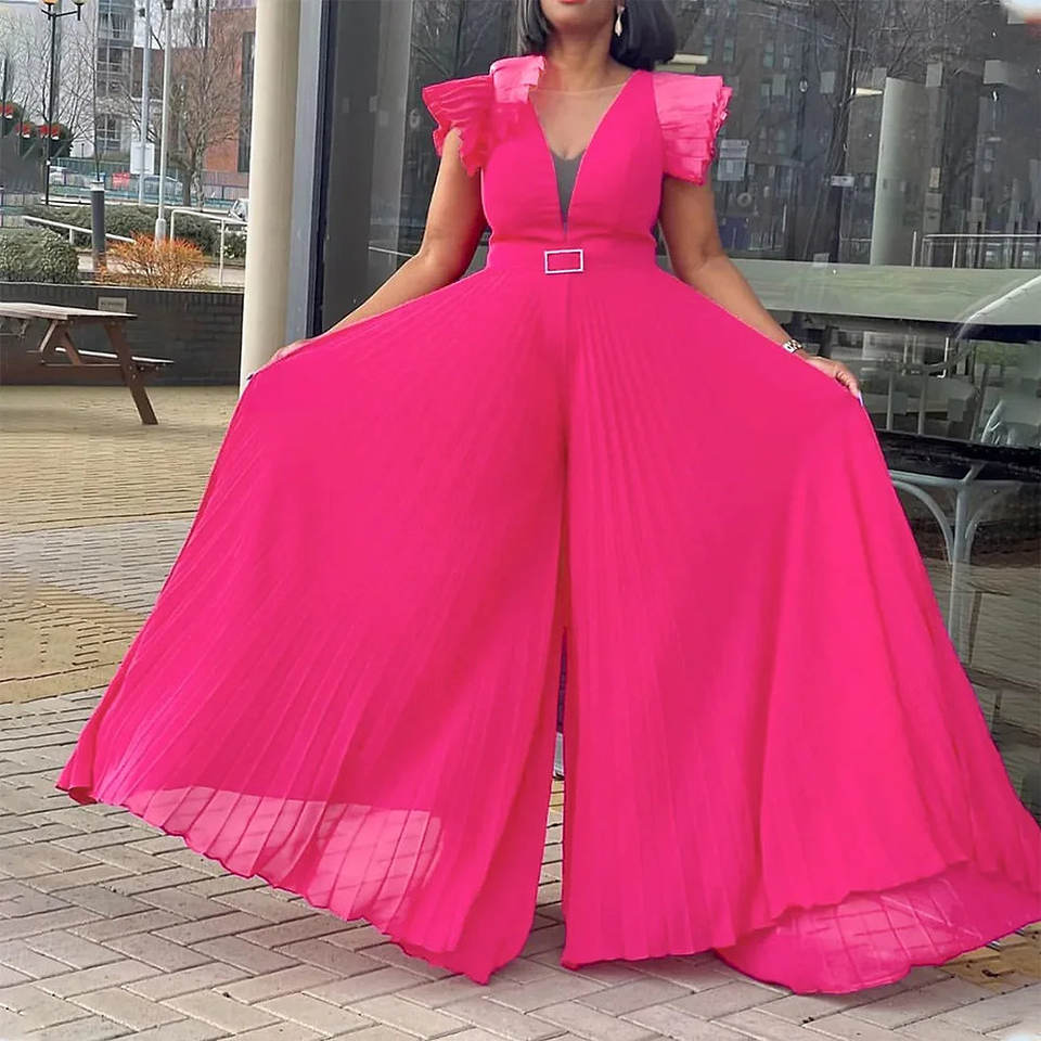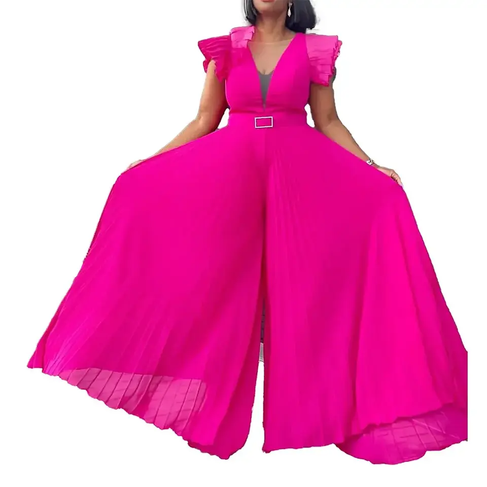 Plus Size Pleated Wide Leg One Piece Jumpsuit with Belt Party Wear