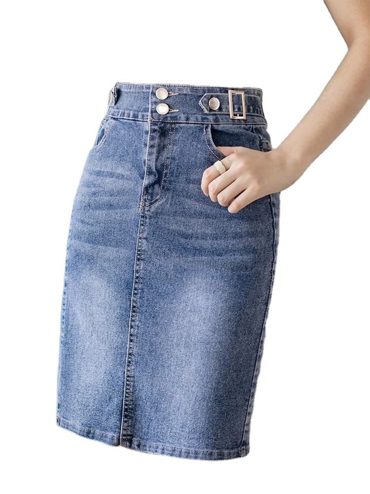 Plus Size Skirt For Women High Waist Large Size Slit Black Or Blue Jeans Skirts Fashion Slim
