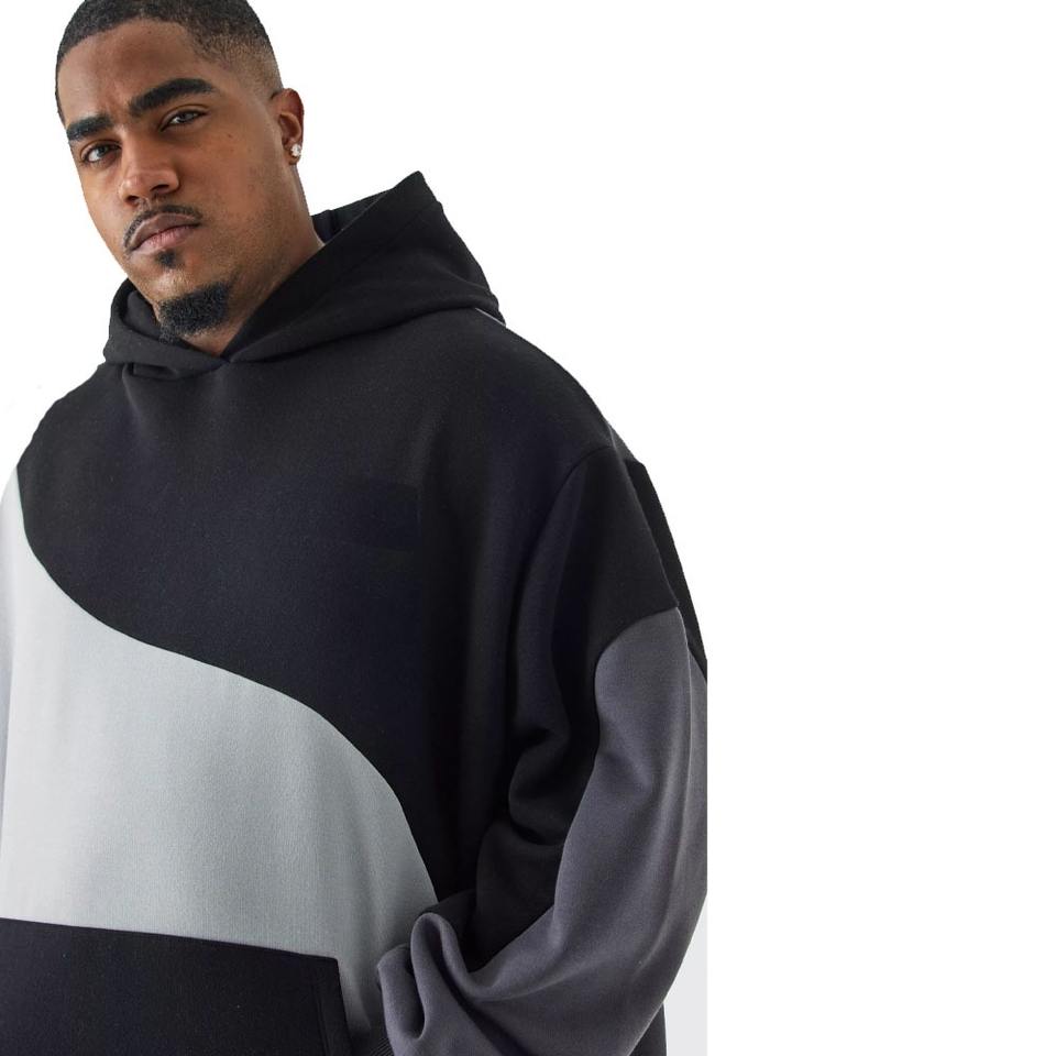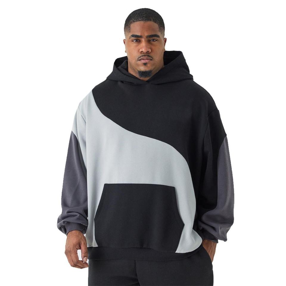 Plus Size Soft Heavyweight Fleece Distressed Contrast Panel Pullover Hoodie Men's Custom Logo Plain Men's Hoodies For Sale